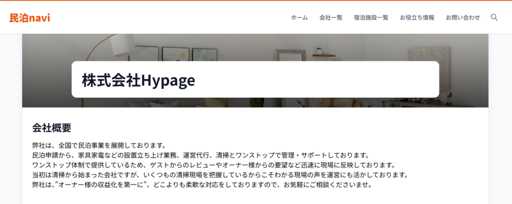 株式会社Hypageは、民泊運営代行会社の比較サイト「民泊navi」に掲載されました。